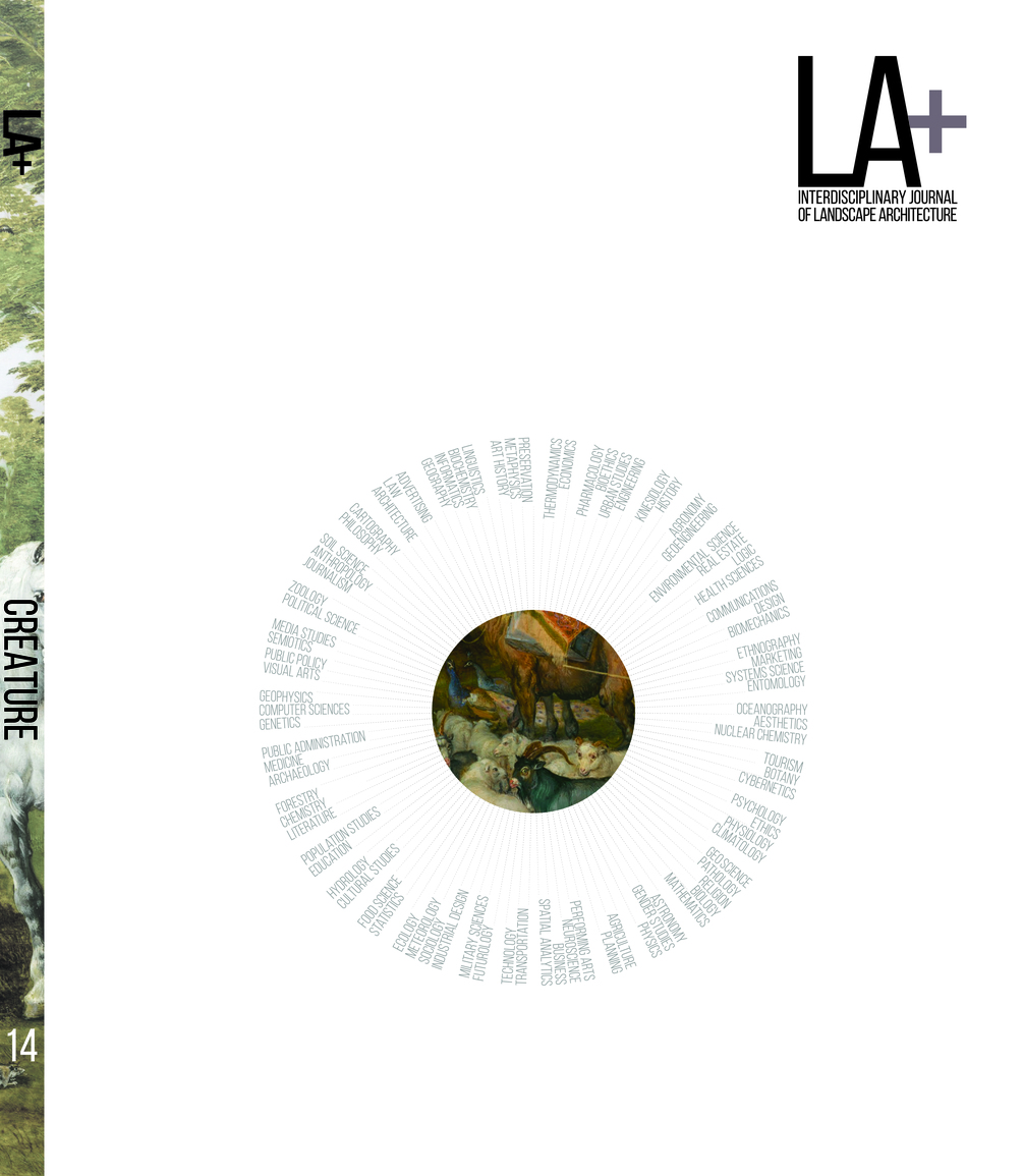 Issue 14 of LA+ Journal brings you the results of the LA+ CREATURE international design ideas competition, which explored how we can use design to achieve a more symbiotic existence with other creatures. The competition brief asked entrants to choose a nonhuman client and design something—a place, a structure, a product, a process, a system—to improve its life and increase human-nonhuman empathy. As well as showcasing the award-winning designs and a comprehensive Salon des Refusés, LA+ CREATURE features an essay by Lori Gruen (author of Critical Terms for Animal Studies) and interviews with jurors Timothy Morton, Kate Orff, Jennifer Wolch, Andrew Grant, Chris Reed, and Farre Nixon.